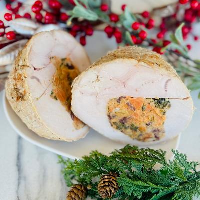 Turkey breast stuffed with Rosalie's house-made stuffing, containing roasted sweet potato, apple, cranberries, kale, rosemary, parsley, onion & confit garlic.