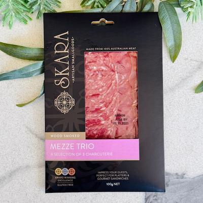‘Mezze’ meaning antipasto in Croatian, and trio references the selection of three different matured charcuterie this pack offers. An excellent artisan addition to your platters and great for sharing with friends and family.